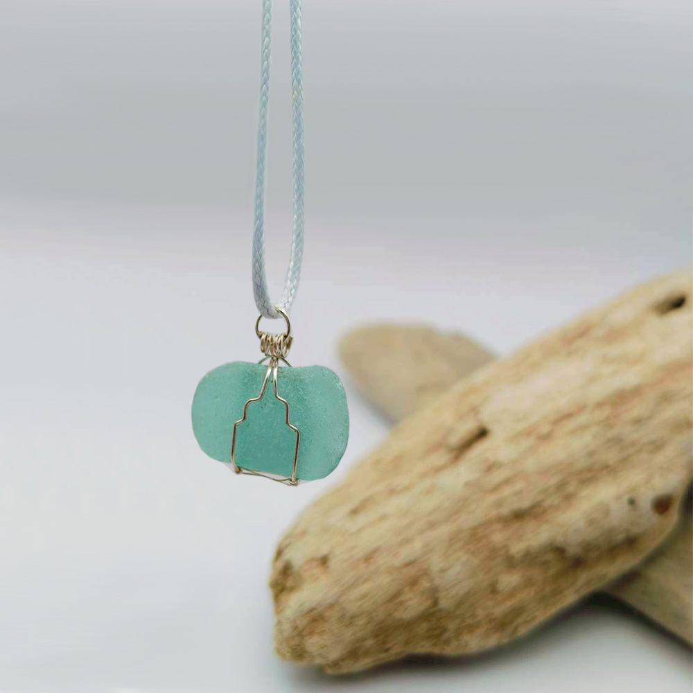 《湖光沁透》|透明湖水綠海玻璃項鍊
