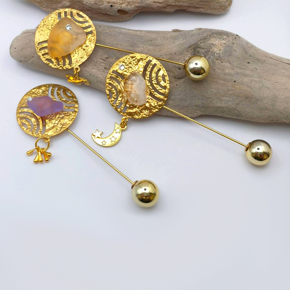 《潮光之語》|金圓紋盤飾・紫霧海玻璃別針