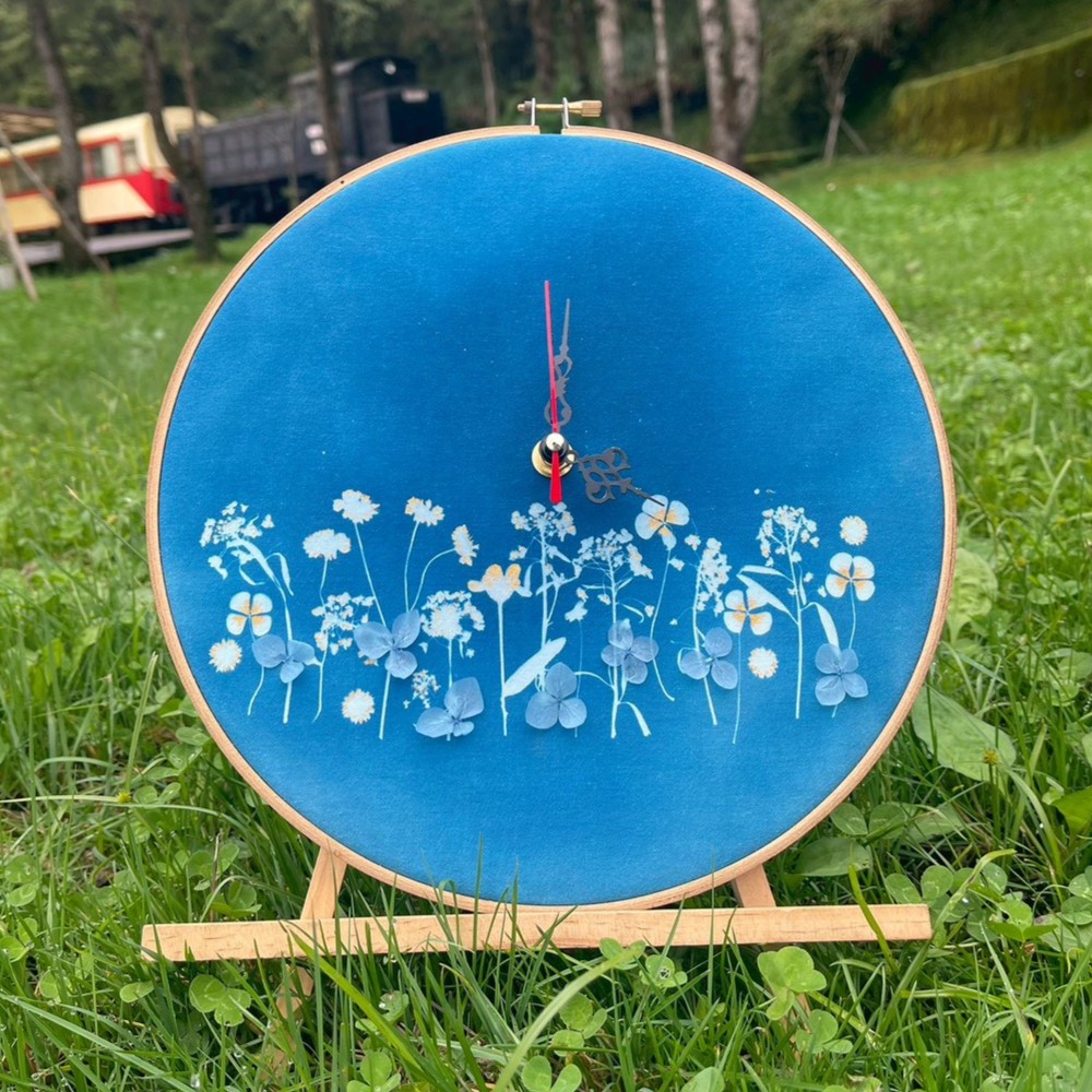 以藍曬留住陽光、花草、手作溫度,將大自然的美好封印,凝結於時光中,融入時光流動,這不只是時鐘,更是自然與手藝的對話,讓每一秒都充滿生命的韻律。