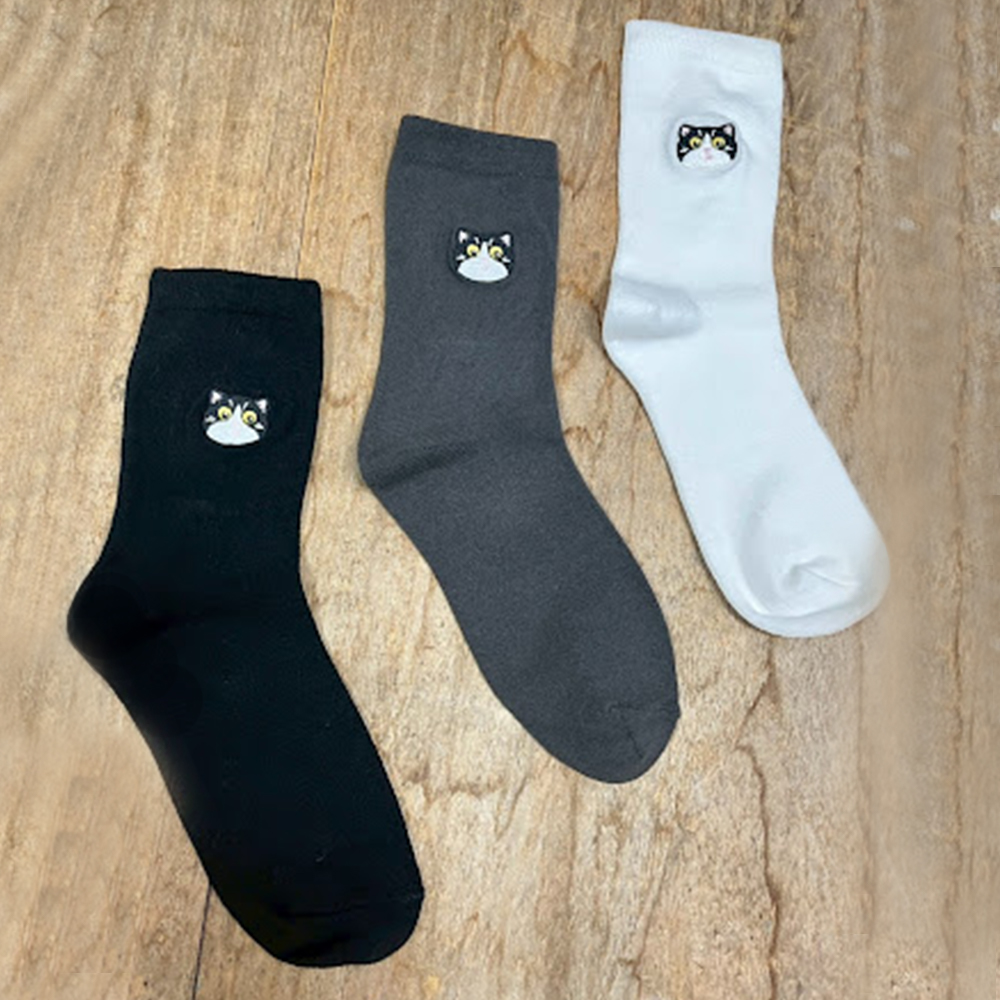 賓士貓刺繡襪 三色ㄧ組